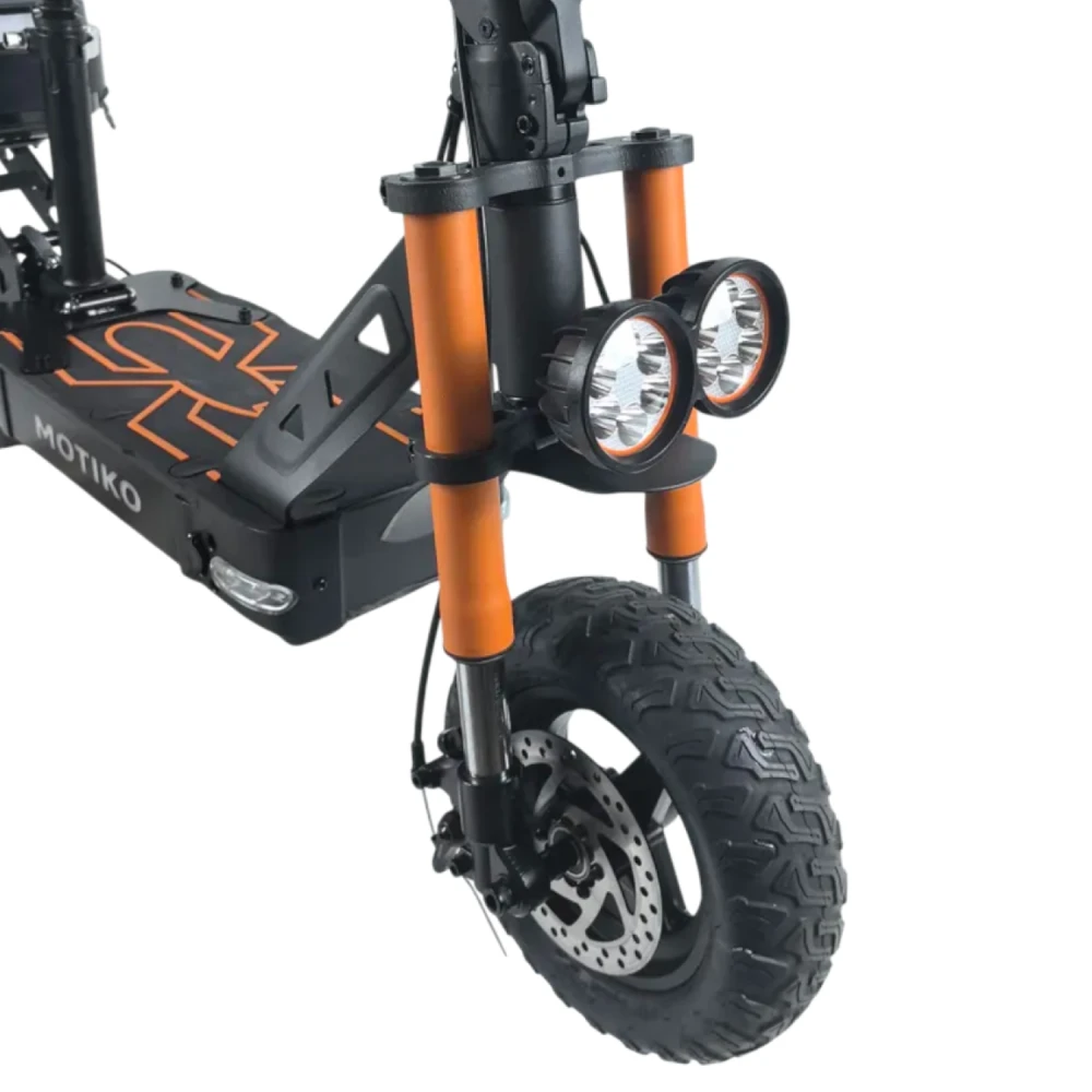 Motiko G1 оснащён передним и задним дисковыми механическими тормозами, которые обеспечивают мгновенное и предсказуемое торможение в любых погодных условиях. Это надёжный электросамокат с дисковыми тормозами, который дарит полный контроль и уверенность. Полный световой пакет включает яркую переднюю LED-фару, указатели поворотов спереди и сзади, задний стоп-сигнал и подсветку платформы. Это электросамокат с поворотниками, который всегда заметен на дороге в любое время суток, а подсветка платформы добавляет стиля и дополнительной видимости. На руле расположен информативный ЖК-дисплей, отображающий скорость, уровень заряда и пробег – всё необходимое всегда перед глазами. Звуковой сигнал (клаксон) позволяет предупреждать пешеходов и других участников движения. Максимальная нагрузка до 120 кг делает самокат доступным для райдеров разной комплекции.