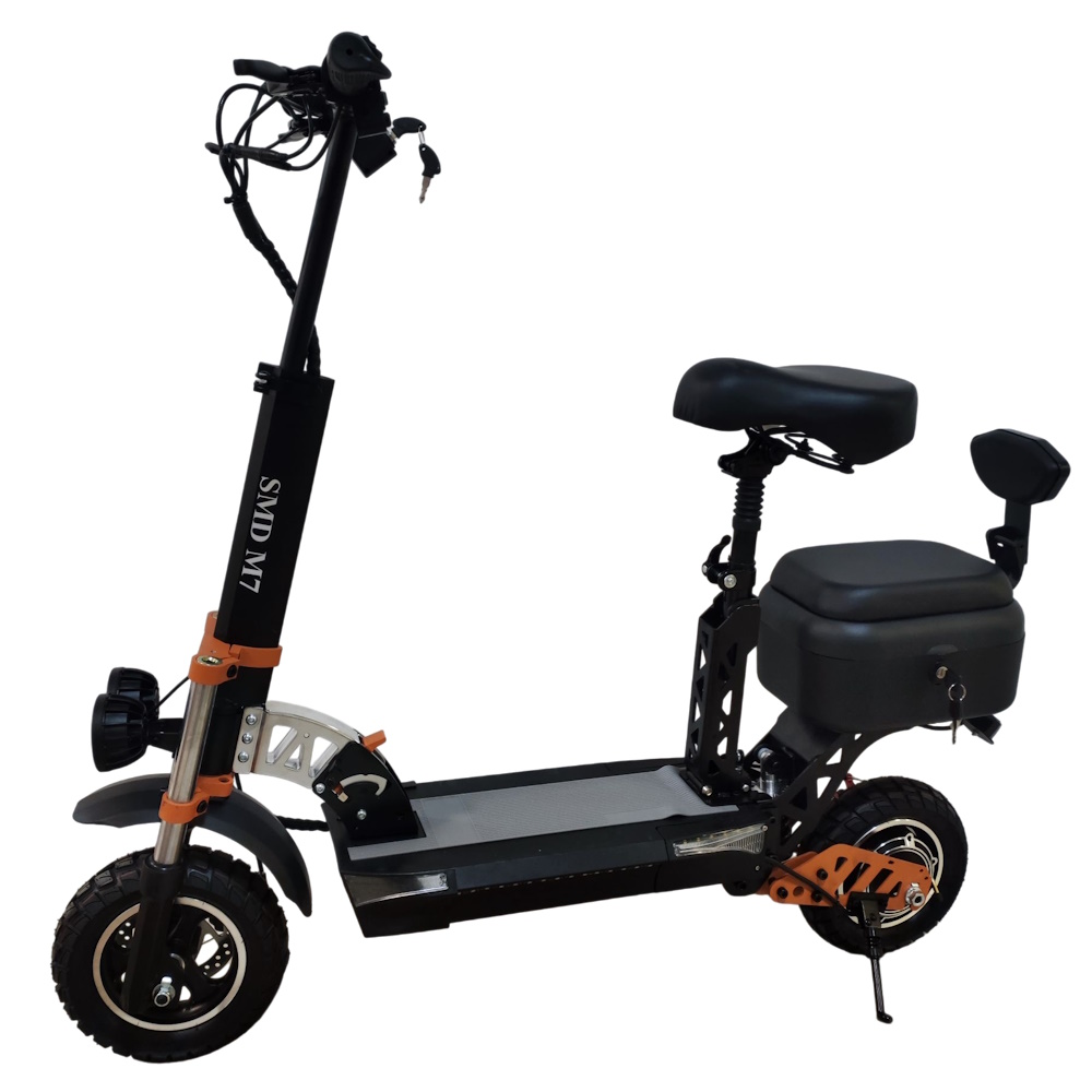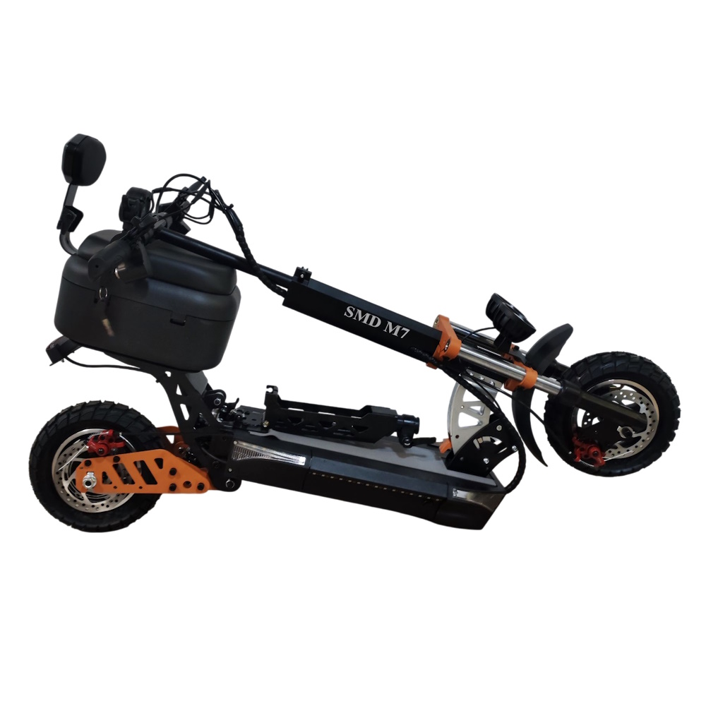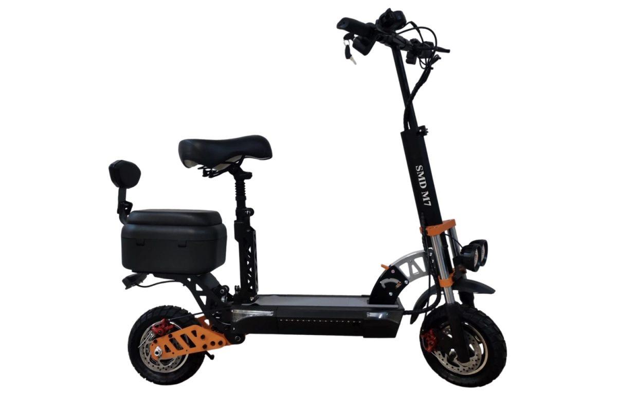 Главная особенность SMD M7, которую отмечают наши специалисты, – это универсальный задний кофр с мягким сиденьем и складной опорной спинкой. Такое решение позволяет безопасно перевозить ребёнка (до 120 кг общей нагрузки) или использовать объёмное отделение для вещей, продуктов, рюкзака. Кофр легко трансформируется, а при необходимости снимается. В паре с передним удобным сиденьем райдера (с собственным амортизатором и пружинами) самокат превращается в идеальный семейный транспорт для прогулок по паркам Минска, Гродно или Витебска. Закажите SMD M7 с доставкой по Беларуси и оцените удобство перевозки самых близких.