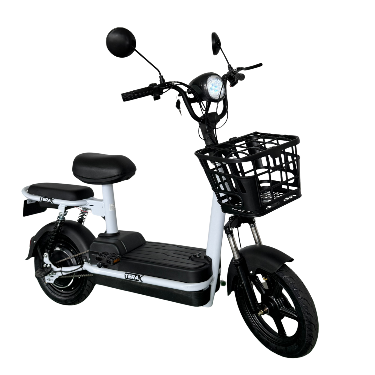 Terax REX NS002 выполнен в классическом чёрном цвете с акцентом на функциональность. Вместительная передняя корзина – это электроскутер с корзиной, который станет незаменимым помощником для походов в магазин или перевозки личных вещей. Прочная стальная рама и антискользящая платформа гарантируют долговечность и безопасность. Удобная подножка позволяет парковать скутер в любом месте. Модель рассчитана на двух человек, что делает её отличным электроскутером двухместным для семейных прогулок.