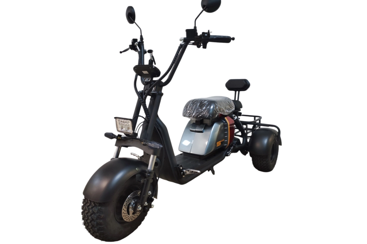 При весе всего 45 кг и компактных габаритах (1650×750×980 мм) трицикл легко транспортировать и хранить — он поместится даже в небольшом тамбуре или на балконе. Это лёгкий трёхколёсный электроскутер, который можно перевозить в багажнике автомобиля или в лифте.