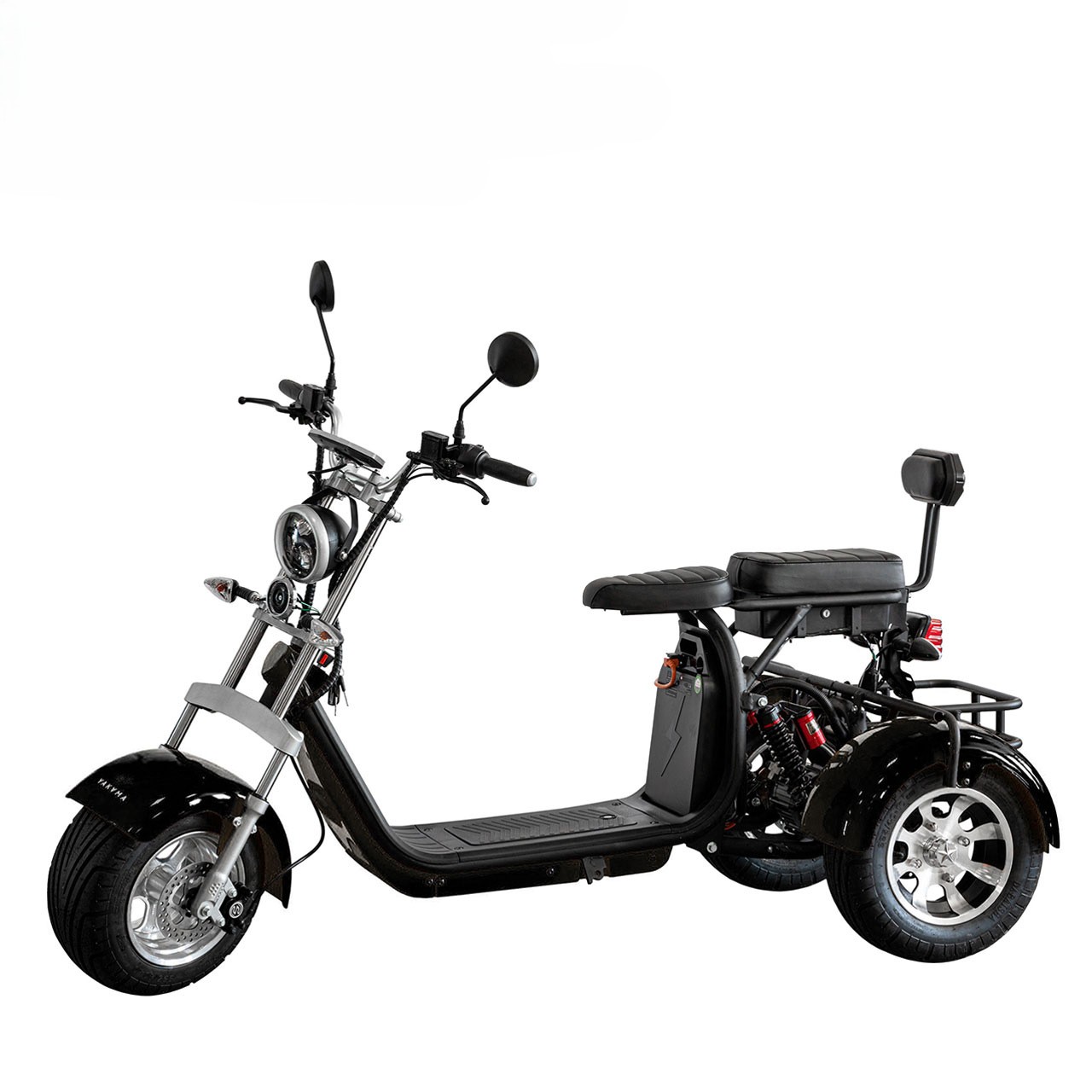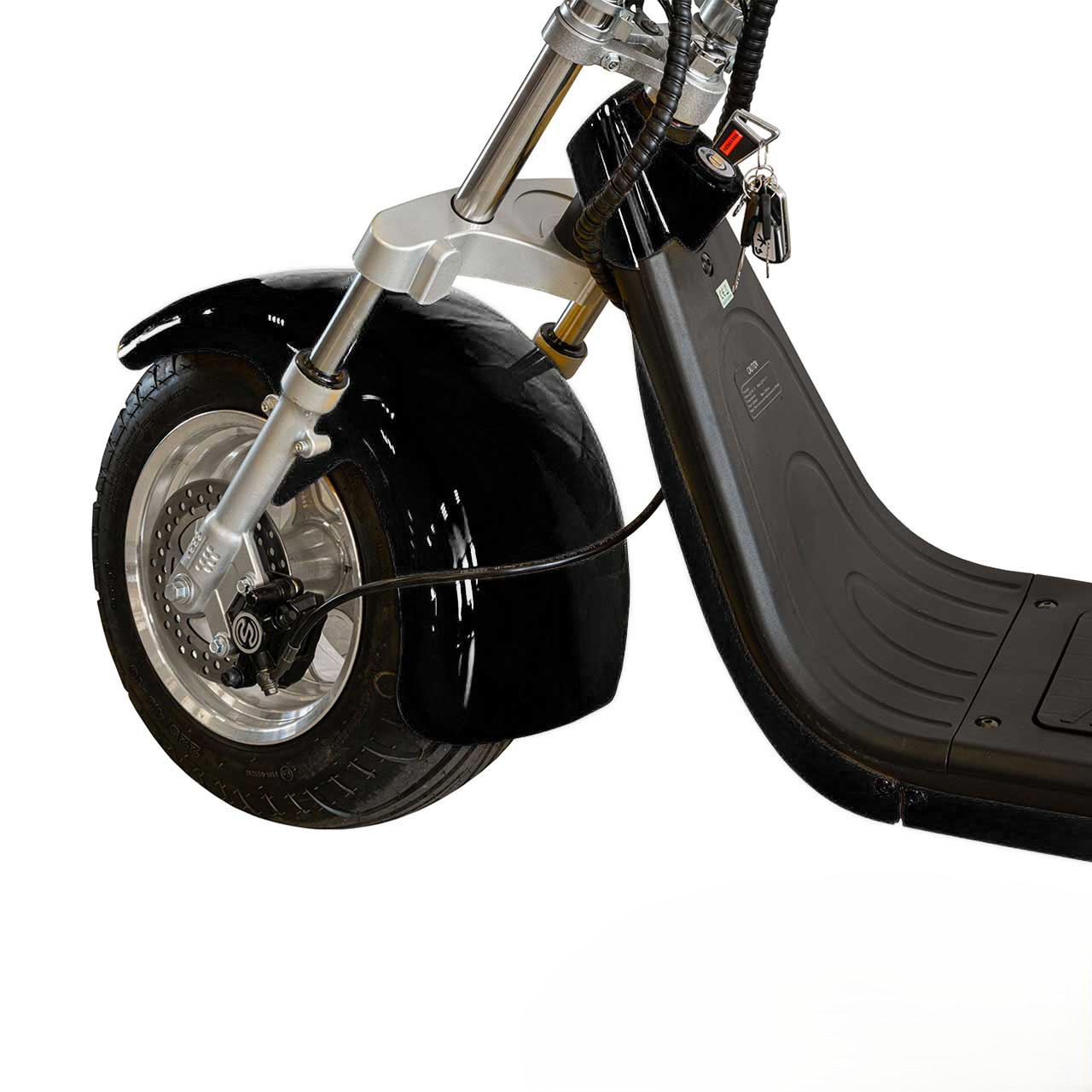 Это не утилитарный транспорт — это шоу-кар. Широкая корма, агрессивная передняя маска и 10-дюймовые алюминиевые литые диски с алмазной шлифовкой притягивают взгляды. Зеркала заднего вида в базе — не просто опция, а элемент стиля. Выделяйтесь среди потока вместе с электроскутером citycoco нового поколения.