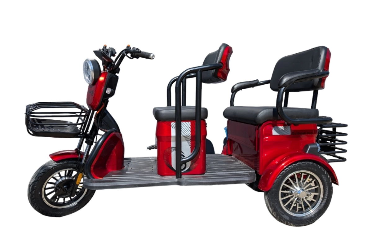 Забудьте о вялом разгоне. Мотор на 1000 Вт — это самый высокий показатель в серии Bulbash. Он дает уверенный старт с любого светофора, легко буксирует грузы и не боится крутых подъемов. Это не просто поездка, это заявление о доминировании на городском бездорожье. Это мощный электротрицикл, который дарит свободу передвижения без ограничений. Его вес в 130 кг — это не недостаток, а свидетельство мощной рамы и основательной сборки. BULBASH PRO S создан не для легких прогулок, а для серьезной работы. Максимальная нагрузка 200 кг — будь то два пассажира, недельный закуп продуктов или профессиональный груз — он справится без единой жалобы. Это настоящий грузовой электротрицикл, созданный для решения серьёзных хозяйственных и коммерческих задач. Благодаря высокой грузоподъёмности, эту модель можно использовать и как пассажирский электротрицикл для совместных поездок.