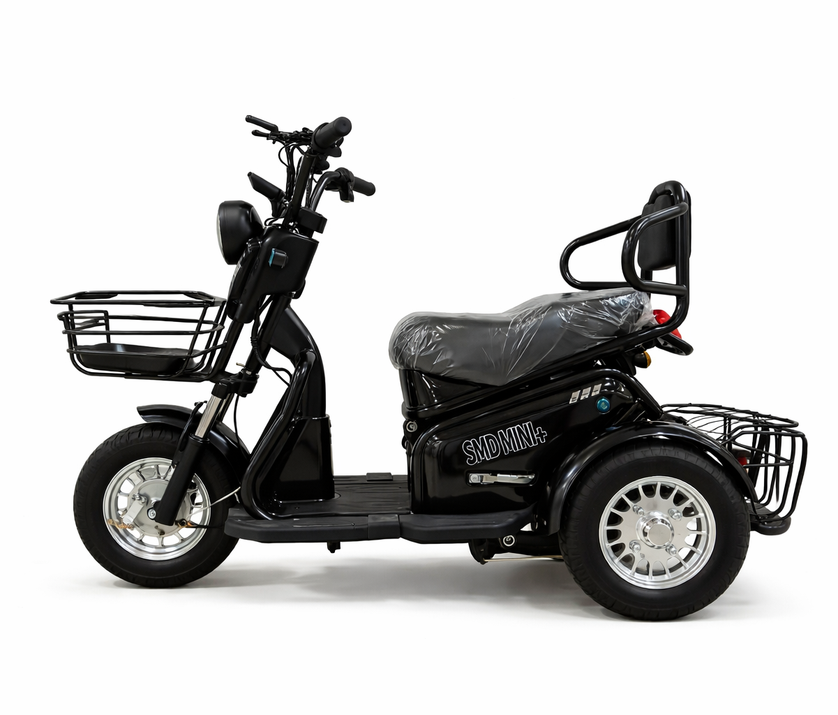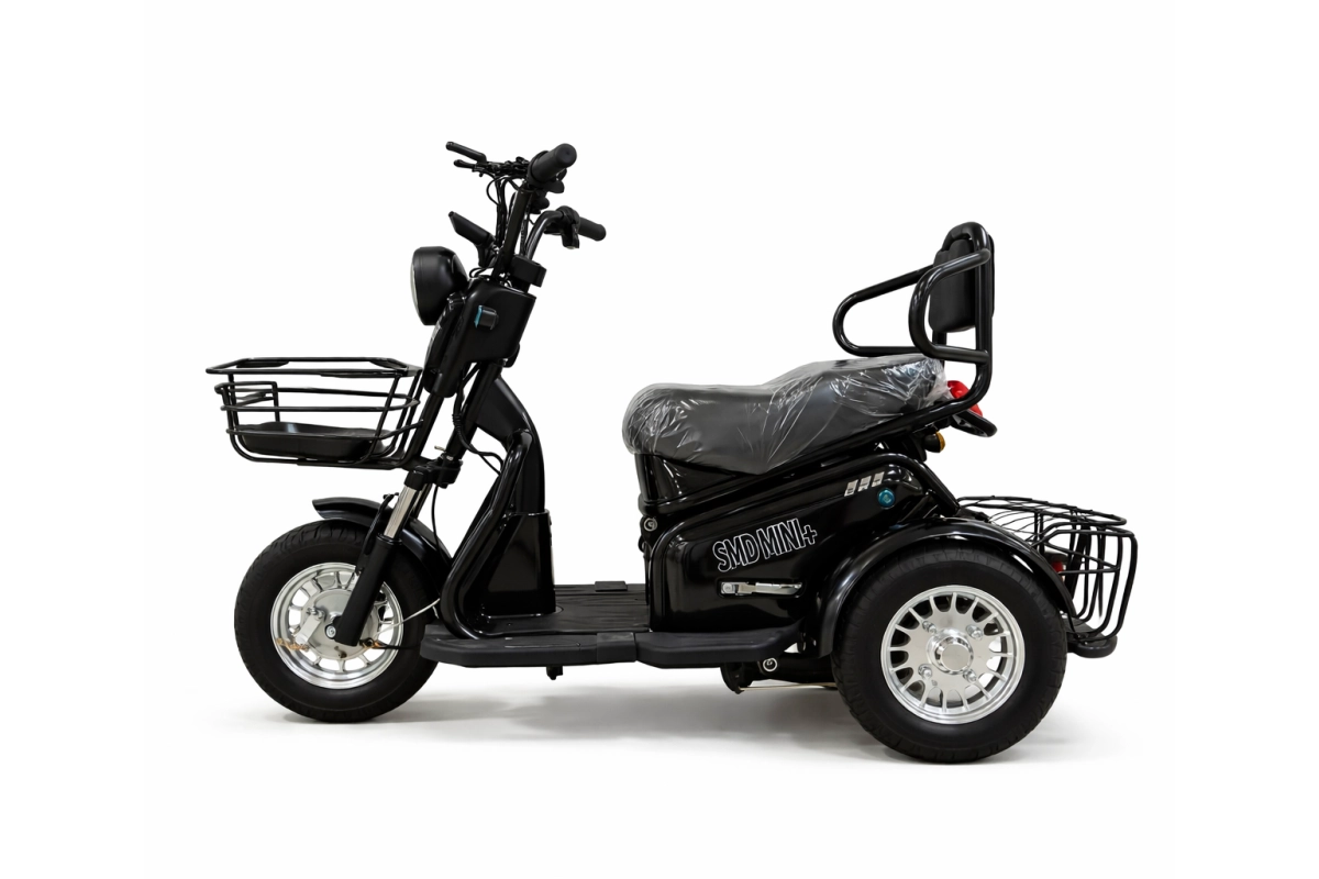 SMD MINI PLUS создан для тех, кто ценит стабильность и безопасность. Трёхколёсная конструкция обеспечивает абсолютную устойчивость – вы не рискуете потерять равновесие на поворотах, при парковке или на скользком покрытии. Это особенно важно для пожилых людей, начинающих райдеров и всех, кто перевозит ценные или хрупкие грузы. Широкая колёсная база (1000 мм) и низкий центр тяжести дарят чувство полного контроля даже при полной загрузке. Благодаря трём точкам опоры, вы легко трогаетесь и останавливаетесь, не задумываясь о подставке ног на светофорах. Это идеальный трёхколёсный электротрицикл для пожилых людей, позволяющий оставаться мобильным без лишних усилий.