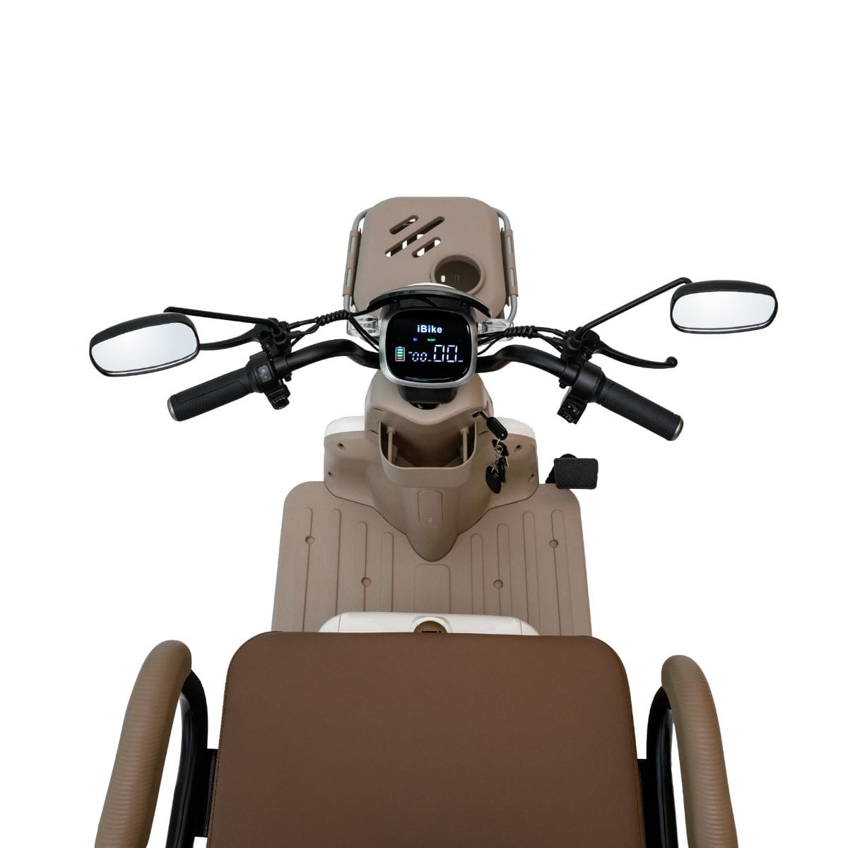 BegiMot Trio Classic создан для тех, кто хочет путешествовать всей семьёй. Модель оснащена детским сиденьем, расположенным между водителем и пассажиром. Это позволяет комфортно перевозить ребёнка, не теряя места для второго взрослого. Сиденья имеют регулировку по высоте, что позволяет настроить посадку под рост водителя. Трёхколёсная конструкция обеспечивает абсолютную устойчивость – вы не рискуете потерять равновесие на поворотах, при парковке или на скользком покрытии. Это особенно важно при перевозке детей. Это лучший пассажирский электротрицикл для семейных прогулок. Благодаря трём точкам опоры, вы легко трогаетесь и останавливаетесь, не задумываясь о подставке ног.