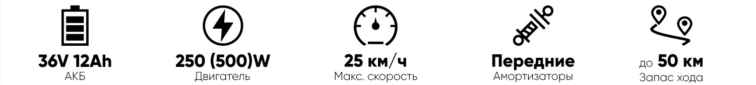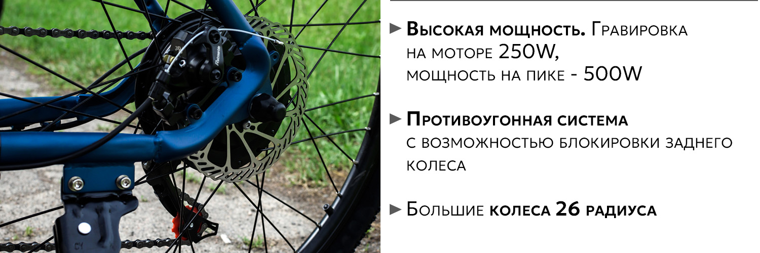 Мощный мотор 250W с пиковой мощностью 500W обеспечивает резвый разгон и легко справляется даже с крутыми подъемами и бездорожьем.