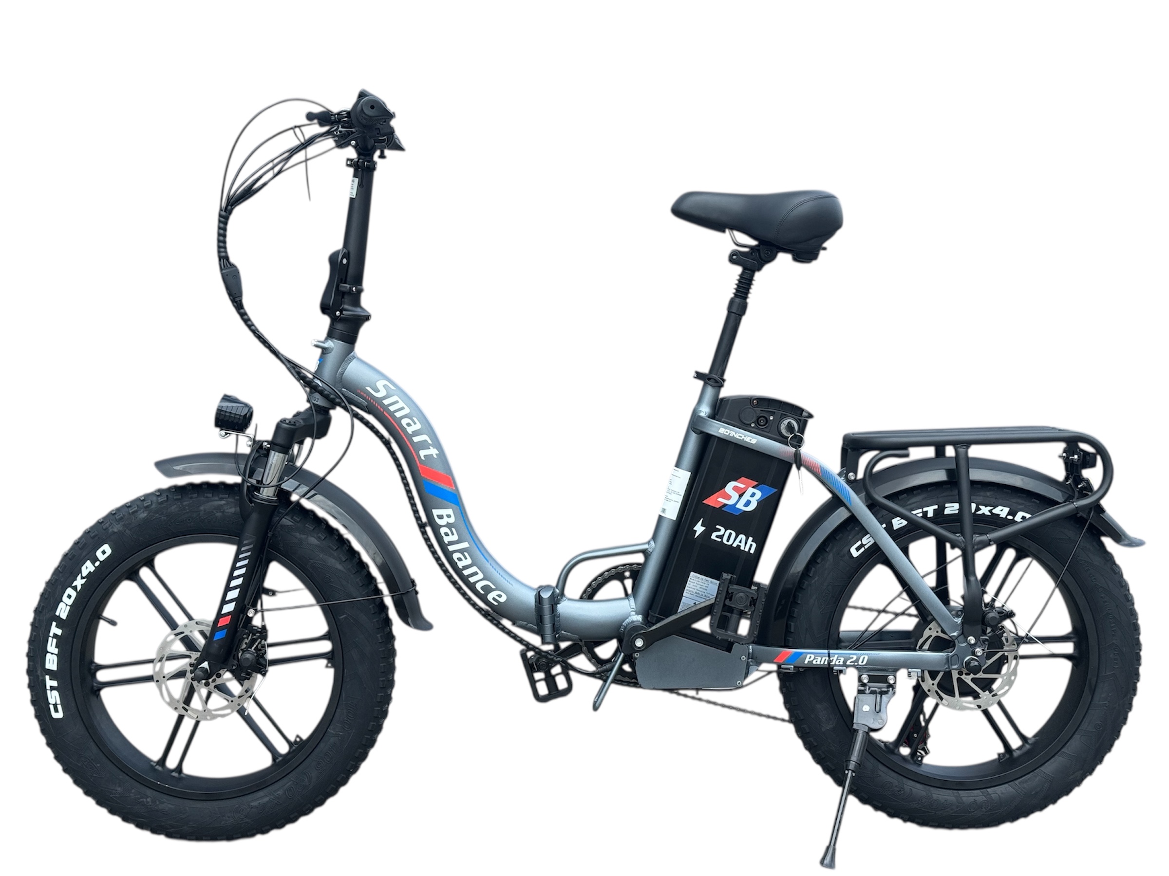 SmartBalance Panda 2.0 создан для тех, кто не хочет выбирать между асфальтом и грунтовкой. Широкие 20-дюймовые покрышки 4.0" с агрессивным протектором дарят отличное сцепление на песке, гравии, снегу и лесных тропах, превращая этот электровелосипед для бездорожья в настоящего вездехода. Передняя пружинно-эластомерная вилка эффективно гасит неровности, а дополнительная амортизация в подседельном штыре снижает усталость даже на длинных дистанциях. Это электровелосипед с амортизацией, который дарит плавность хода и уверенность. Высокий клиренс и устойчивая геометрия рамы позволяют легко преодолевать бордюры и ухабы, а регулируемая высота руля обеспечивает комфортную посадку для райдеров разного роста. Благодаря широким колёсам и усиленной конструкции, этот фэтбайк идеально подходит для городских и загородных маршрутов.