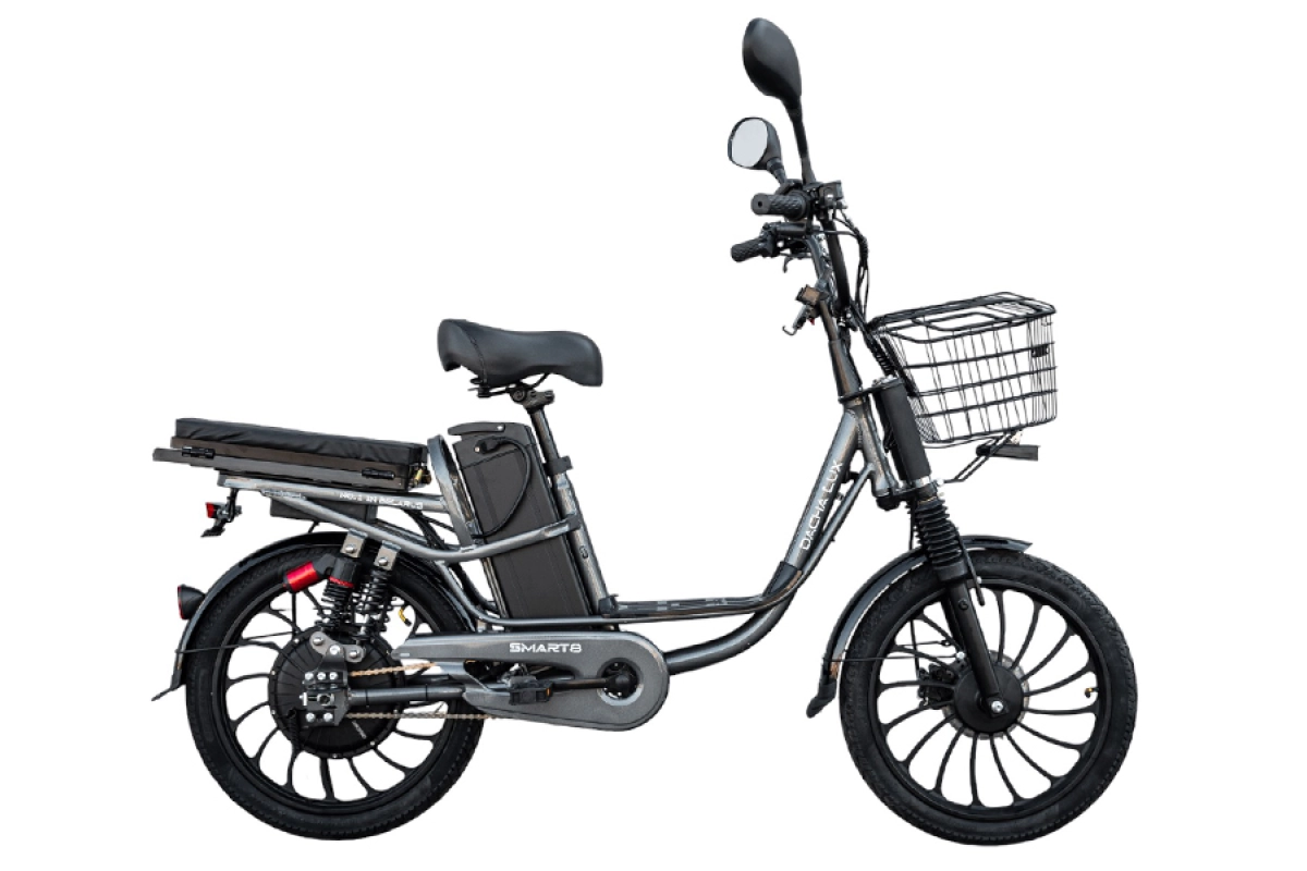 Ездить на Smart8 Dacha Lux не только безопасно, но и комфортно. Все элементы управления расположены на руле, что делает управление интуитивно понятным. Пассажирское сиденье легко трансформируется в багажник – вы можете перевозить второго человека или крупногабаритные грузы. Это идеальный двухместный электровелосипед, который адаптируется под ваши задачи. Дополнительно вместительная корзина для перевозки грузов расположена спереди – продукты, сумки или инструменты всегда под рукой. Благодаря такой конструкции модель смело можно назвать грузовым электровелосипедом для повседневных нужд. Стальная рама и алюминиевые ободья делают велосипед прочным и одновременно лёгким (всего 40 кг), что облегчает маневрирование и хранение. Это отличный электровелосипед колхозник, готовый к любым хозяйственным задачам.