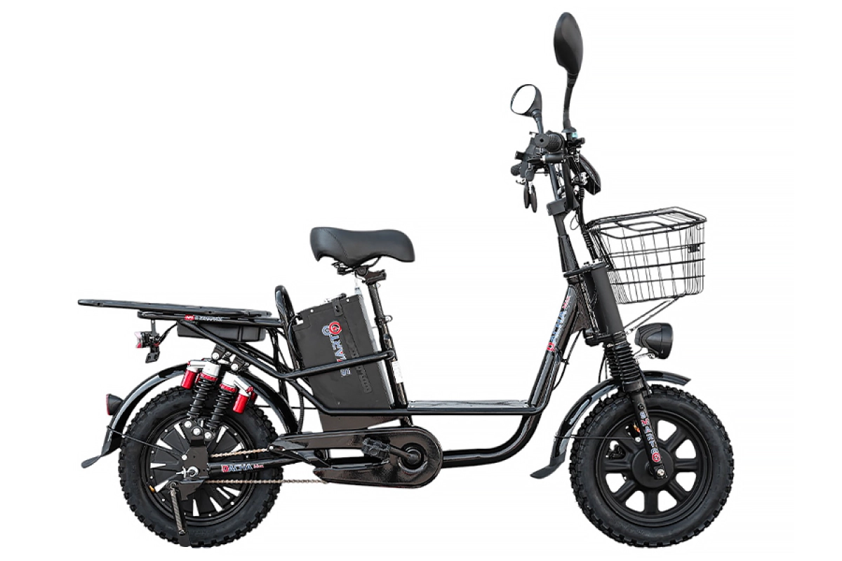 Максимальная нагрузка до 150 кг позволяет использовать экотранспорт для перевозки двух человек или крупногабаритных грузов. Модель оборудована вместительной передней корзиной, куда можно положить продукты, инструменты или сумки. Это отличный грузовой электровелосипед для хозяйственных нужд и коммерческого использования. Удобное сиденье для пассажира позволяет брать с собой второго человека – это настоящий двухместный электровелосипед. Прочная конструкция и вес 60 кг обеспечивают отличную устойчивость даже при полной загрузке.