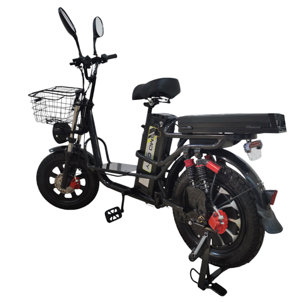 SMD MONSTER — это идеальный двухместный электровелосипед. Заднее сиденье из мягкого полиуретана имеет складную конструкцию с опорной спинкой. Но главная его фишка — трансформация в просторный багажник. Достаточно сложить сиденье, и вы получаете вместительную грузовую платформу, на которую можно закрепить коробки, сумки, рюкзаки или даже ящик для доставки пиццы. Для пассажира предусмотрены удобные широкие откидные подножки — ноги будут в комфортном положении даже в дальней дороге.