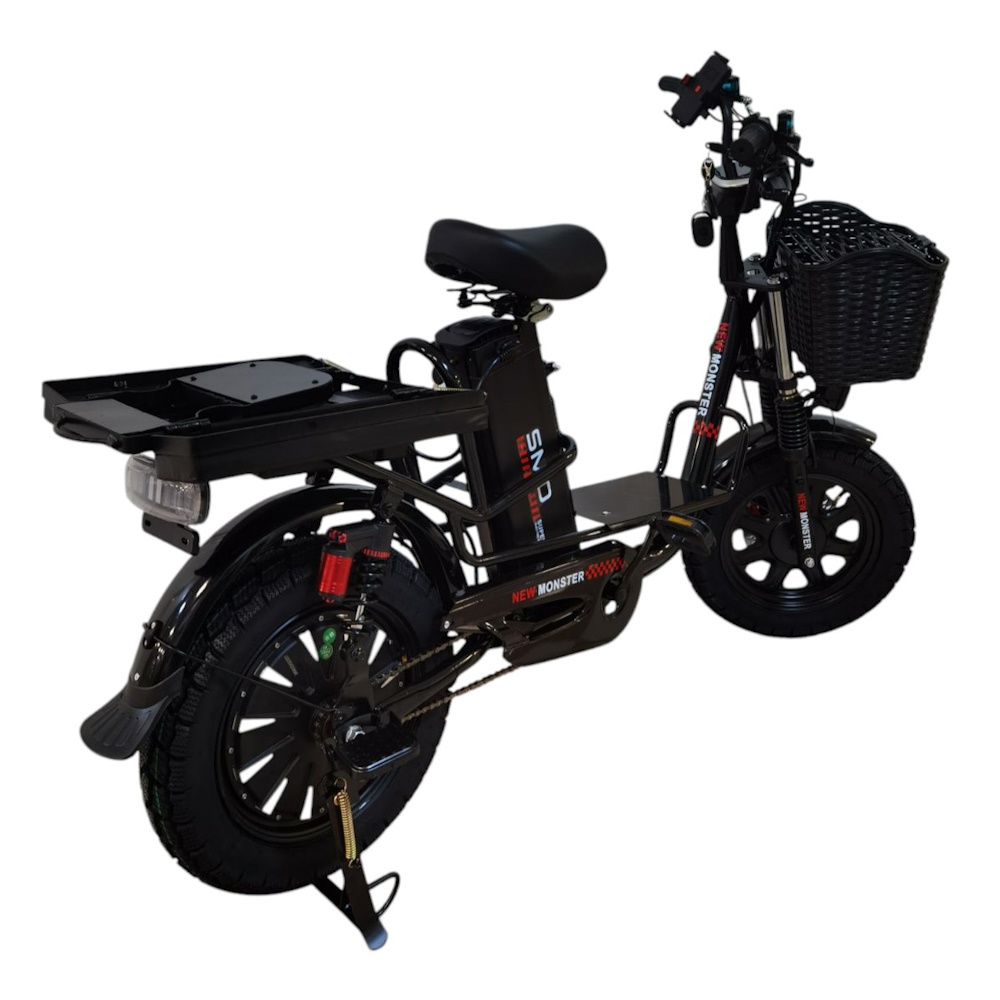 Представляем вам обновлённого лидера среди грузопассажирских электробайков — электровелосипед SMD NEW MONSTER. Эта модель создана для тех, кому нужен по-настоящему универсальный транспорт: мощный, вместительный, проходимый и при этом комфортный. Новая версия получила увеличенную до 21 Ач батарею 60В, усовершенствованную гидравлическую тормозную систему с двухпоршневыми суппортами, цветной дисплей и полный набор светотехники, включая поворотники. Пиковая мощность мотора 1000 Вт в сочетании с широкими 16-дюймовыми шинами и усиленной подвеской позволяет уверенно передвигаться по бездорожью, а трансформируемое заднее сиденье превращает велосипед в грузовой багажник за секунды. Хотите купить электровелосипед в Минске, который станет незаменимым помощником для дачи, доставки или активного отдыха? SMD NEW MONSTER — ваш идеальный выбор.