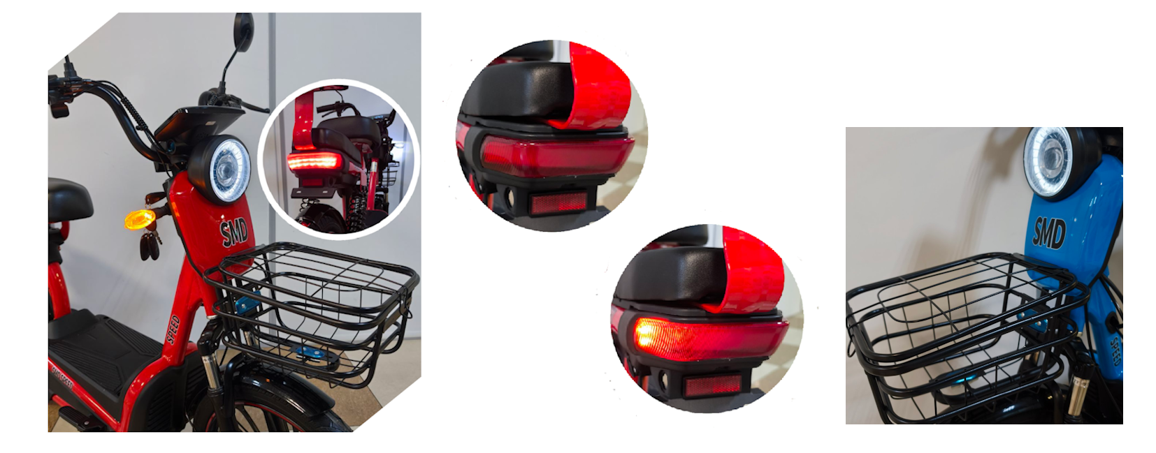SMD SPEED продуман до мелочей для повседневного использования. Вместительная металлическая корзина спереди позволит взять вещи в дорогу или привезти продукты из магазина – это электровелосипед с корзиной, который станет незаменимым помощником в хозяйстве. Удобные подножки для постановки ног райдера, подножки для пассажира, а также две стояночные подножки (центральная с фиксатором и боковая) обеспечивают устойчивую парковку в любых условиях. Большой центральный информативный бортовой компьютер (ЖК-дисплей) отображает скорость, заряд аккумулятора, пробег и выводит ошибки при возникновении поломок – всё необходимое всегда перед глазами.