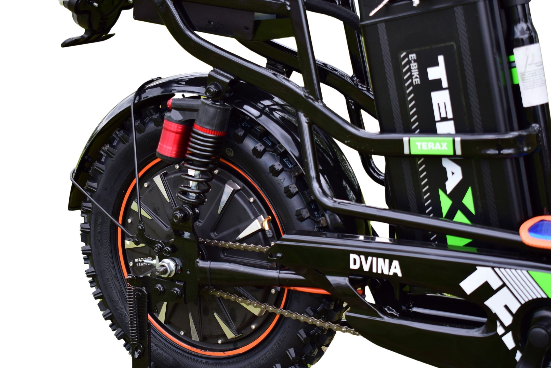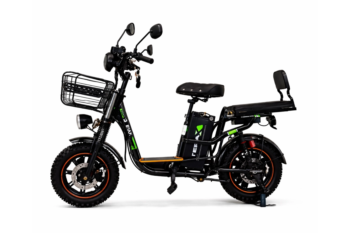 Электровелосипед Terax DVINA XD03 – это мощный грузопассажирский гибрид, созданный для тех, кому нужна максимальная надёжность, грузоподъёмность и комфорт в каждой поездке. Модель разработана для перевозки двух человек и серьёзных грузов – с максимальной нагрузкой 250 кг этот грузовой электровелосипед справится с самыми сложными задачами. Пиковая мощность 800 Вт, ёмкий литий-ионный аккумулятор 60 В 21 А·ч и двойная амортизация делают его идеальным выбором для семейных прогулок, дальних поездок за город, фермерских хозяйств и курьерской доставки. Если вы ищете мощный электровелосипед в Минске, способный перевозить двоих с багажом и не боящийся дальних маршрутов, Terax DVINA XD03 – ваш надёжный спутник. Права не нужны – вы можете управлять им без водительского удостоверения. Оцените электровелосипед цена которого соответствует выдающимся характеристикам, в Nakolese.by.