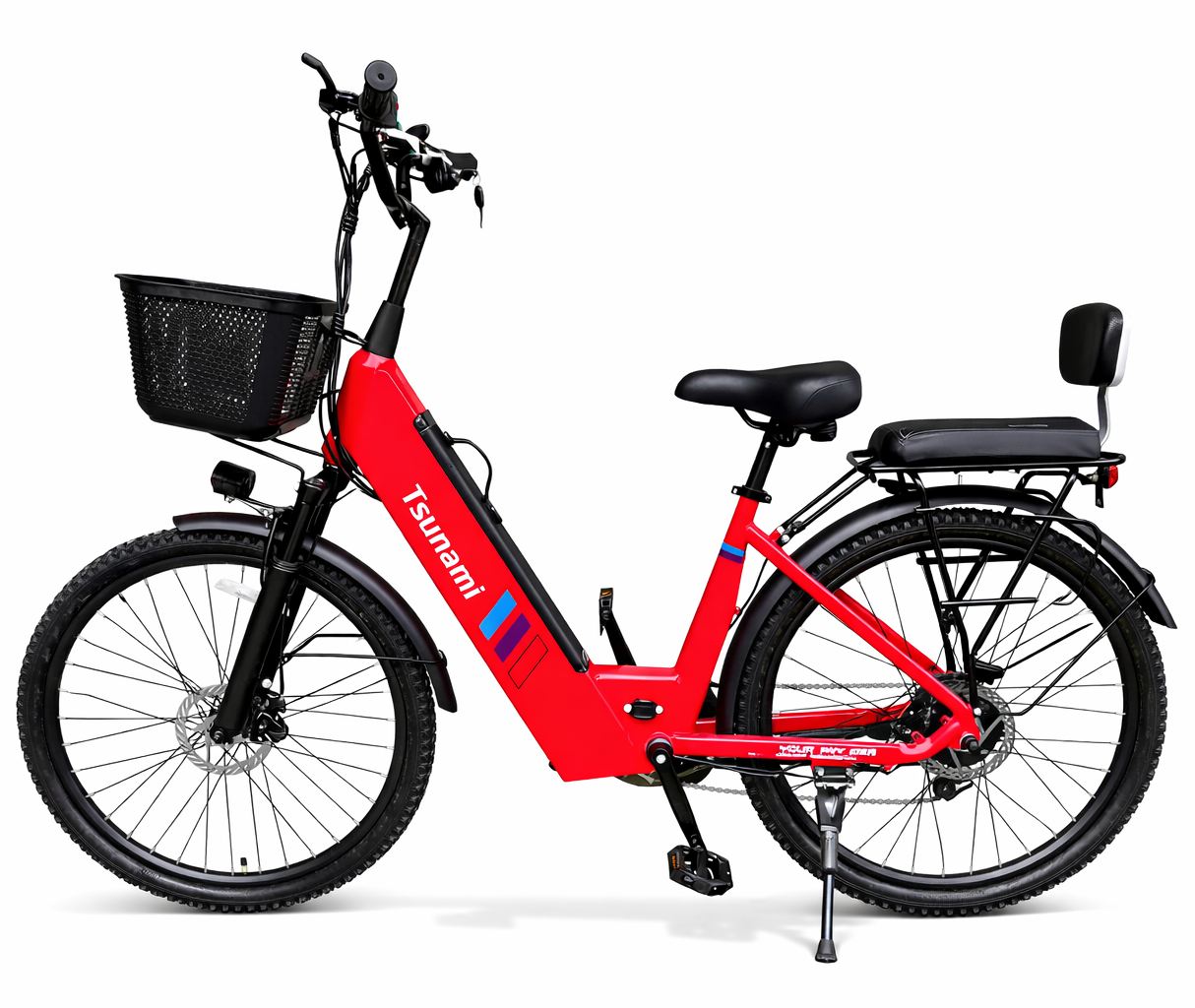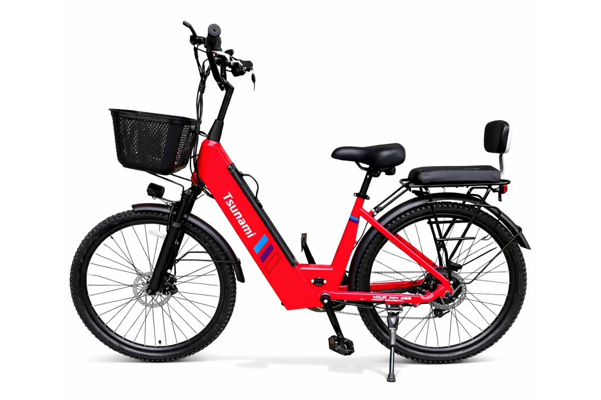 «Мнение нашего сервисного центра: Tsunami Volteco – это отличный выбор для тех, кто ищет практичный и стильный электровелосипед с корзиной. Яркий красный цвет, вместительная корзина и 7-скоростная трансмиссия Shimano делают его идеальным для повседневных поездок, походов за покупками и загородных прогулок. Клиенты отмечают, что на этом велосипеде легко управляться, он устойчив и отлично подходит для всей семьи».