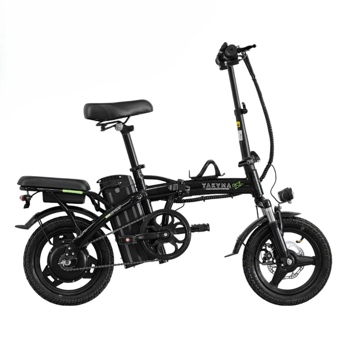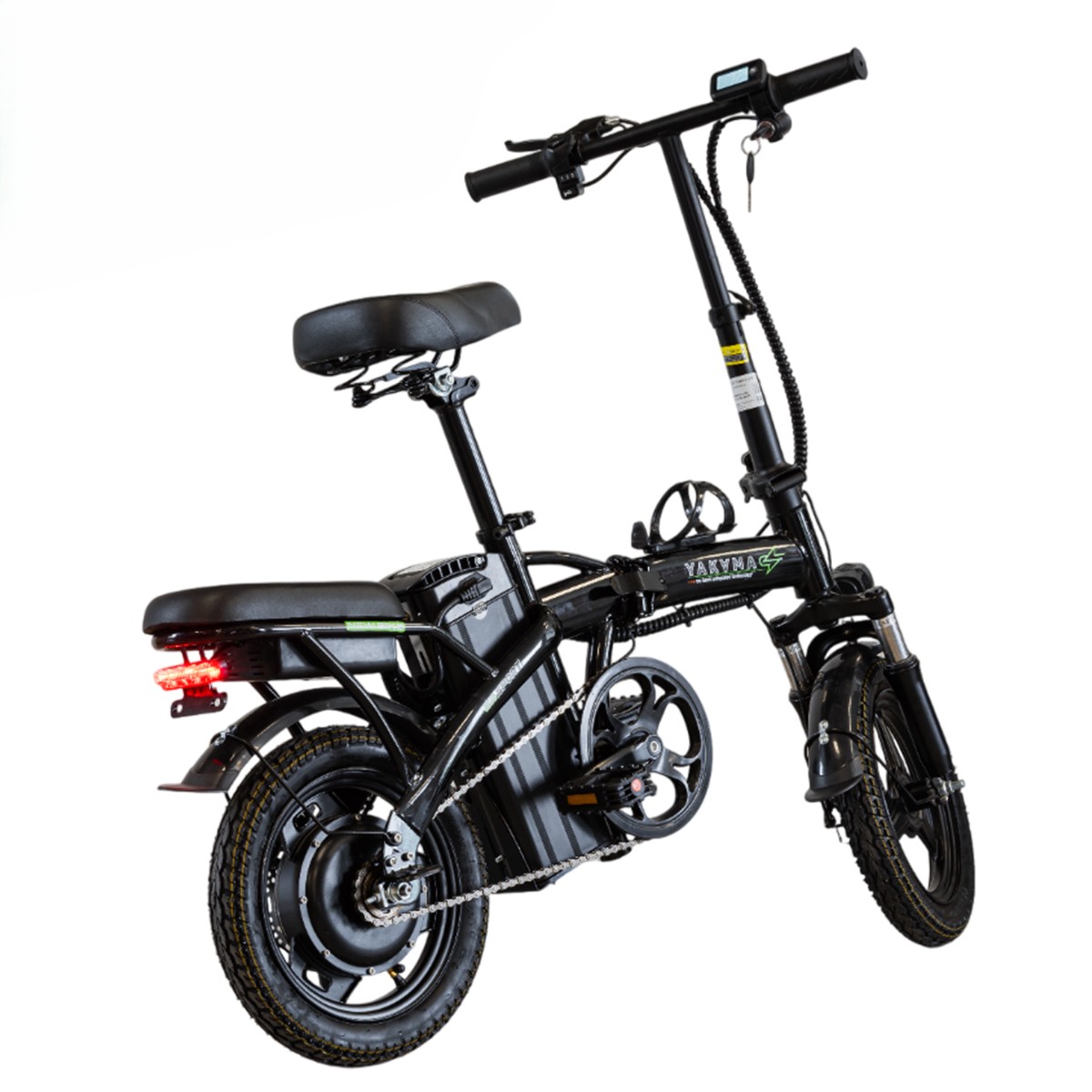 Электровелосипед с дисковыми тормозами Yakama S5 обеспечивает уверенное торможение в любую погоду. Передний амортизатор и толстые покрышки 14×2.125 дюймов с протектором гарантируют плавный ход даже на неровной дороге. Встроенная фара повышенной яркости обеспечивает вашу безопасность в темное время суток. Информативный дисплей позволяет контролировать все параметры поездки. Двойное сиденье с амортизацией под рамой позволяет взять с собой пассажира или закрепить дополнительный груз. Это отличный вариант для тех, кому нужен электровелосипед двухместный в компактном исполнении. А привлекательная электровелосипед цена делает его доступным для широкой аудитории.