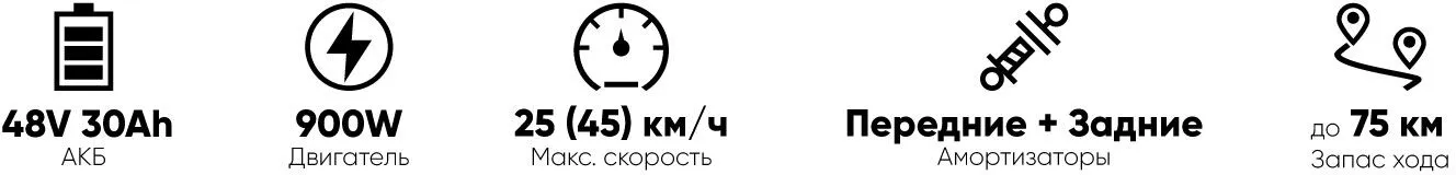 Невероятный запас хода до 75 км! Забудь о ежедневной зарядке и планируй любые маршруты без оглядки на розетки.