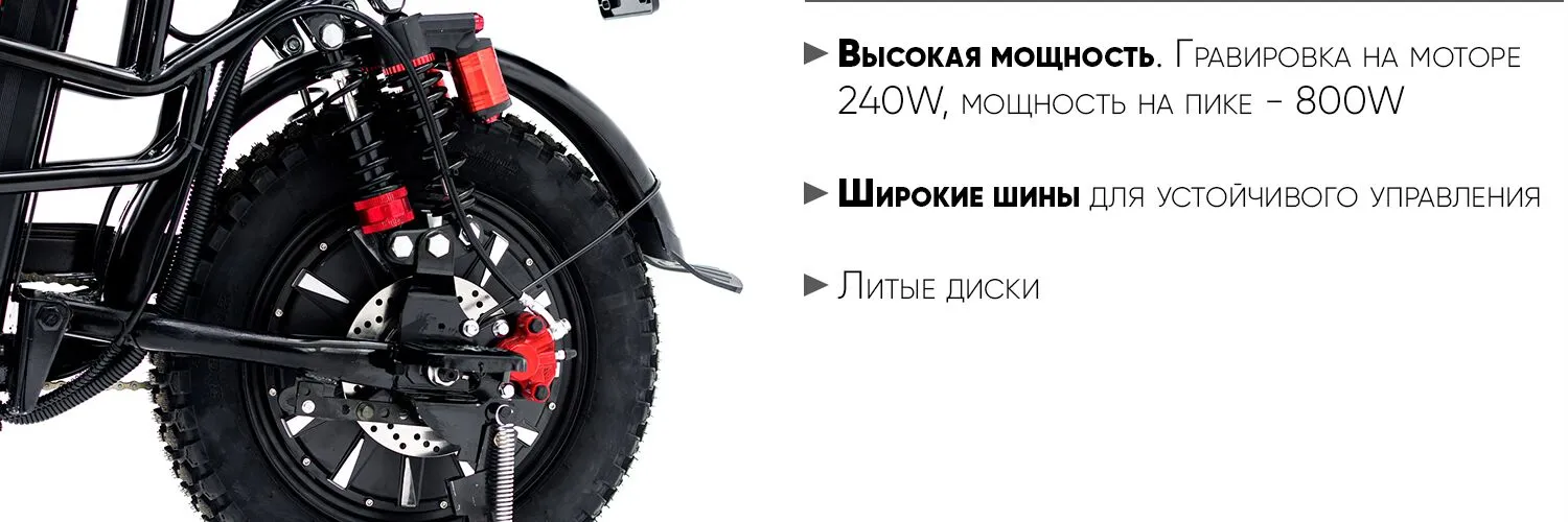 Двойная амортизация (передняя и задняя) делает поездку комфортной даже на неровных поверхностях. Вы почти не почувствуете кочки и ухабы!